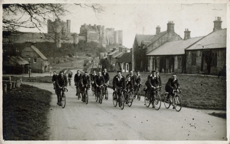 The Clarion Cycling Club was more than a leisure pursuit. Rooted in the socialist Clarion newspaper, its members carried political discussion and solidarity with them along the miles they travelled. Images in Fred’s archive — from Shipley in 1924 to post-war Czechoslovakia — capture the camaraderie of riders gathered in front of landmarks, their bicycles lined up like a worker’s parade on two wheels.